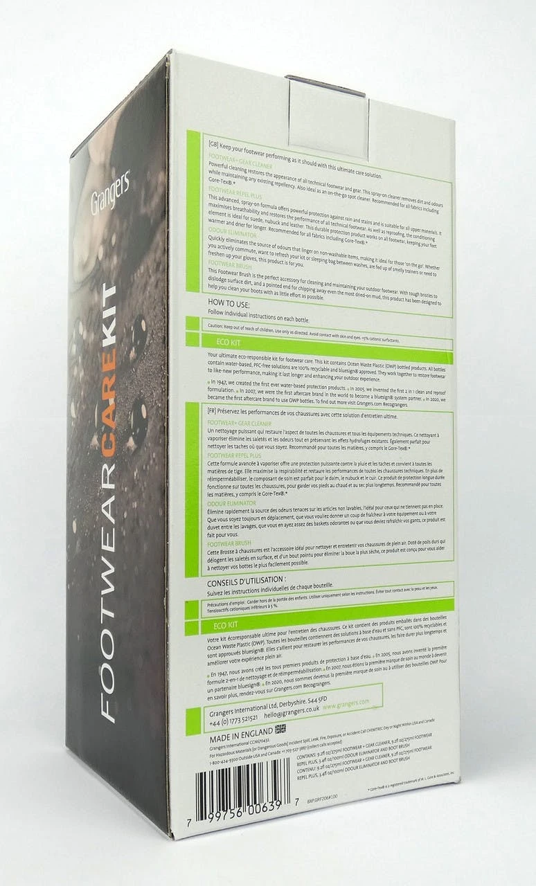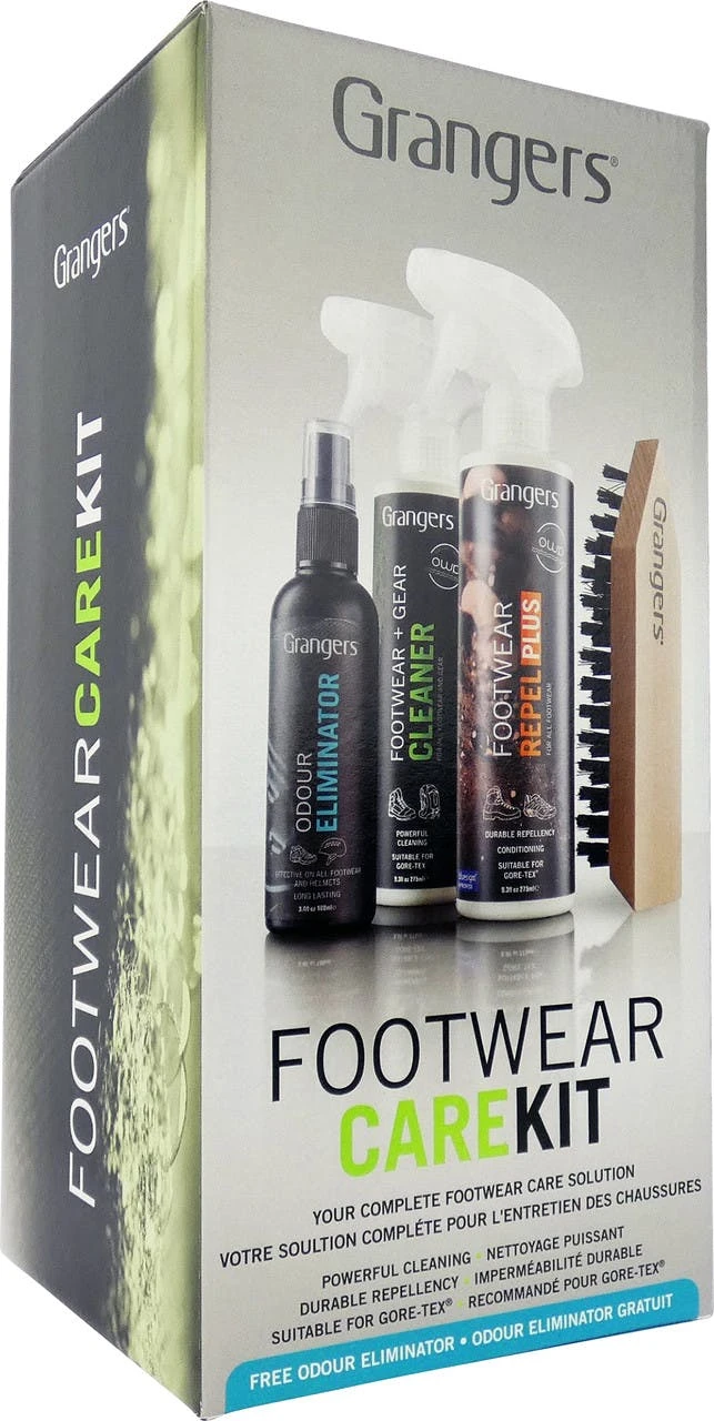 Keep your feet dry and comfortable by taking good care of your footwear. This kit includes everything you need to clean and waterproof your boots or shoes.